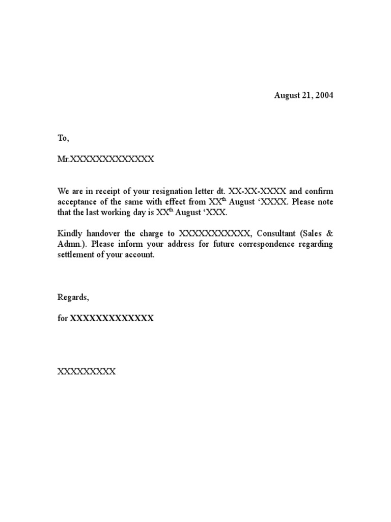 Relieving Letter is quite crucial as it is an official letter stating that the employee doesnt hold the companys data internal property etc. Acceptance of Resignation Letter typically acknowledges employees contribution and experience to the company. When an employee wants to join another company that heshe has to submit physical proof which states that heshe has indeed officially resigned from the previous job.